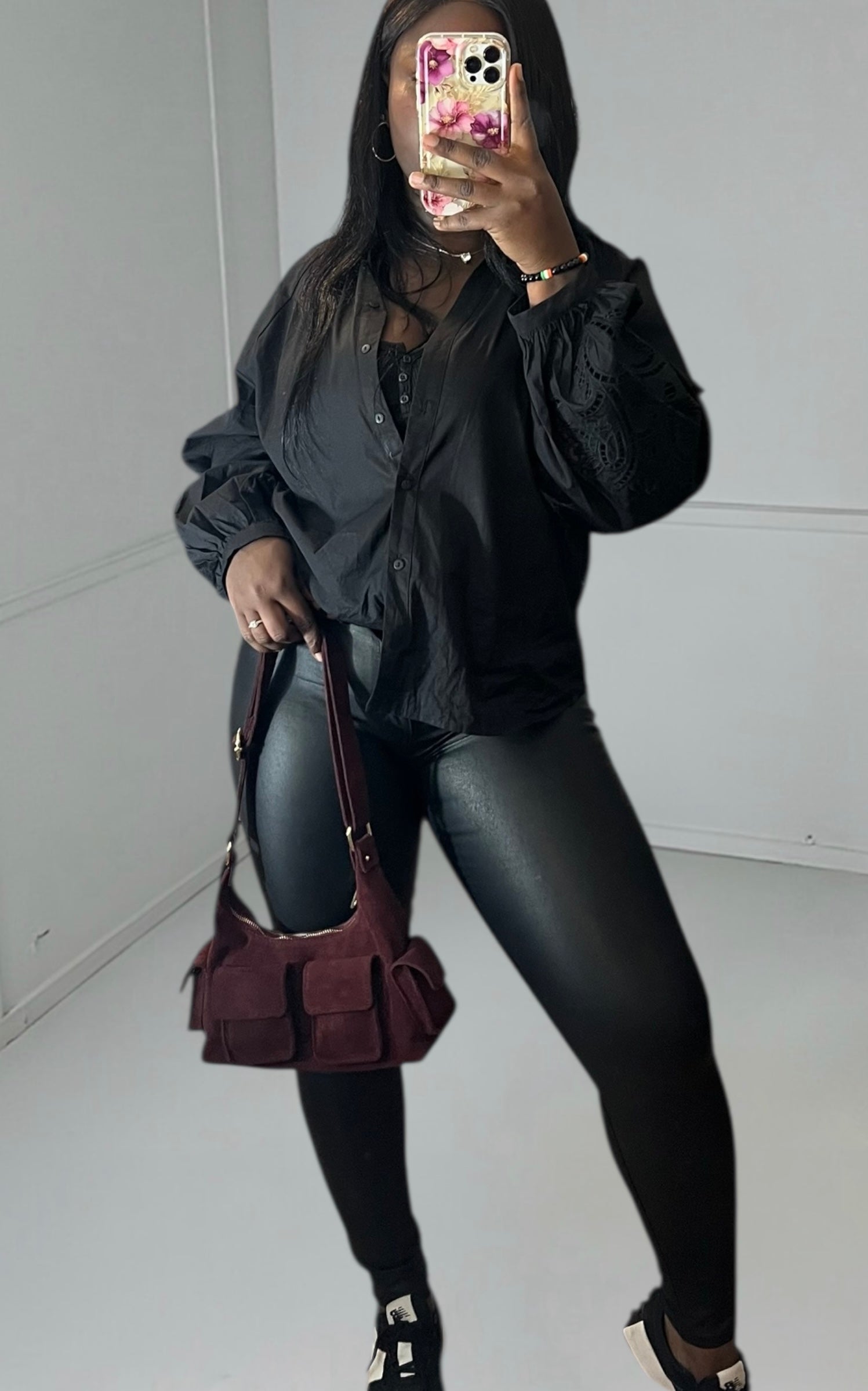 The IRIS trousers embody the rock-chic spirit of the ELVIRE STYLE woman. Made from premium quality faux leather, they combine the rebellious attitude of leather with a modern sophistication that never goes unnoticed.