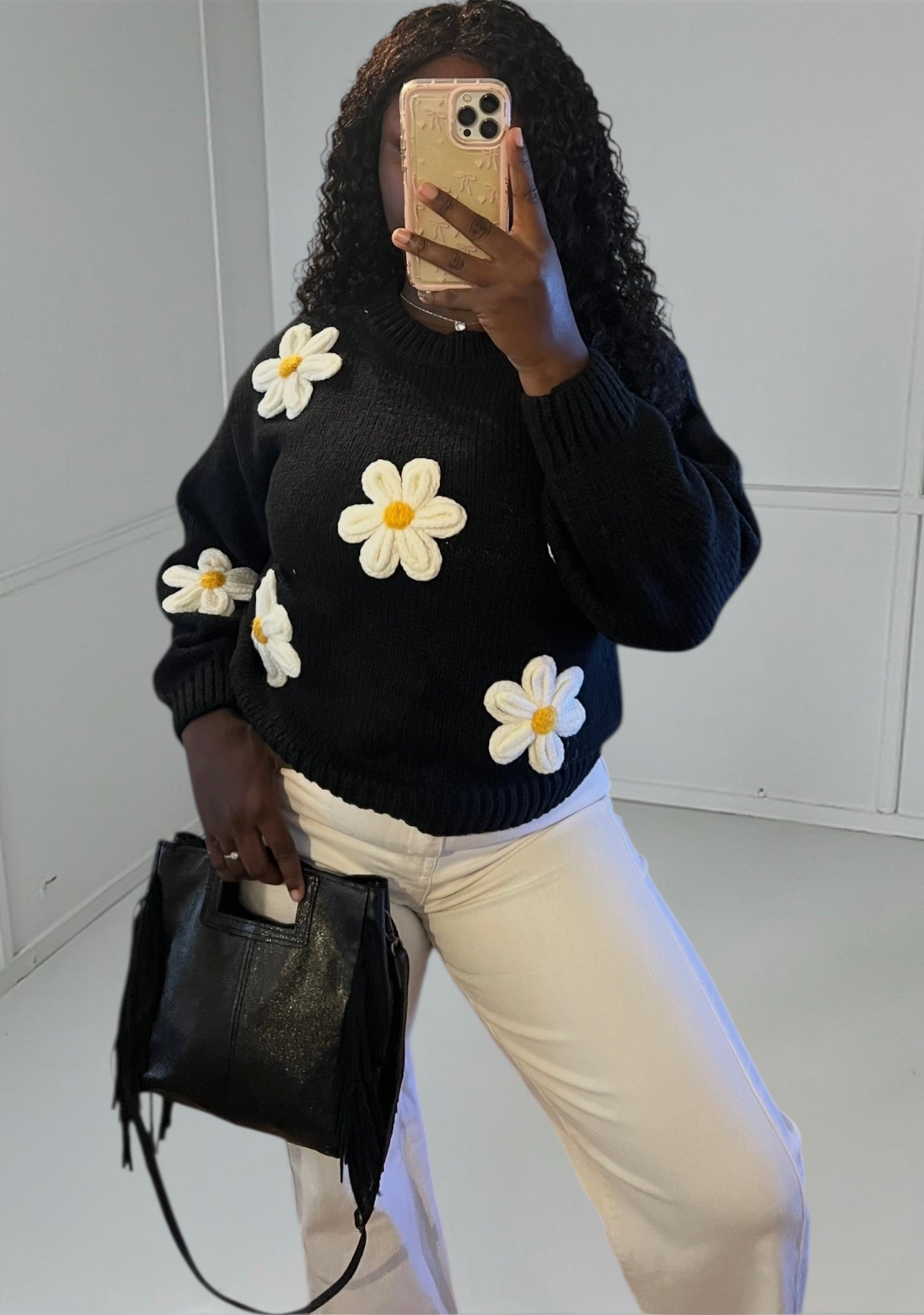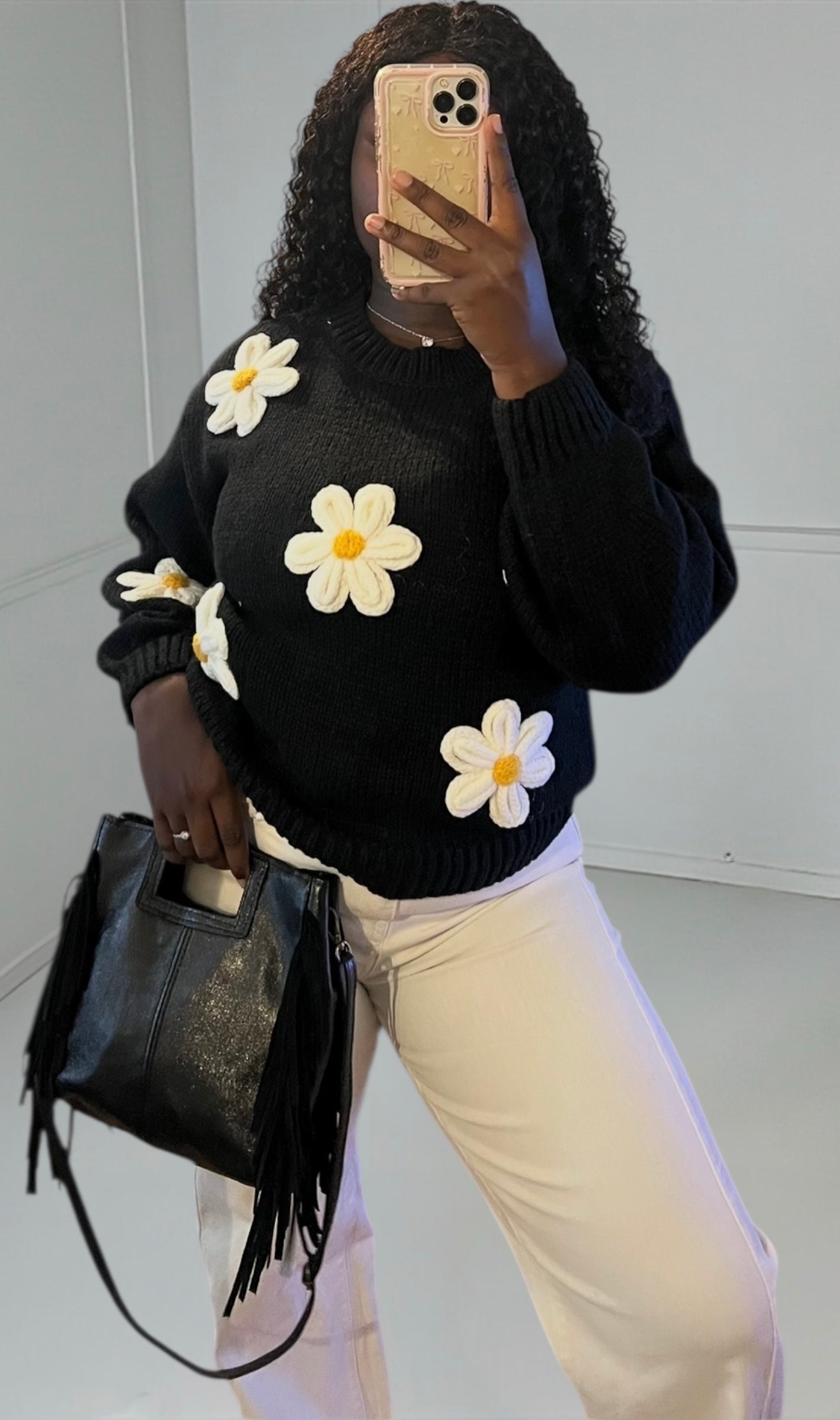 Spring freshness and floral softness. The daisy sweater that brightens your days.