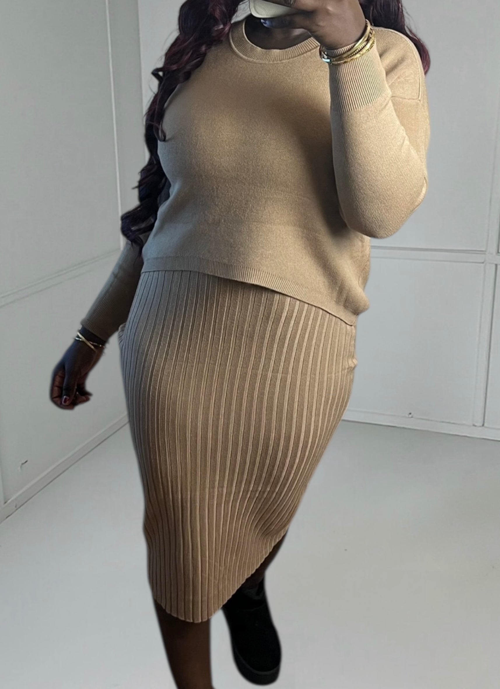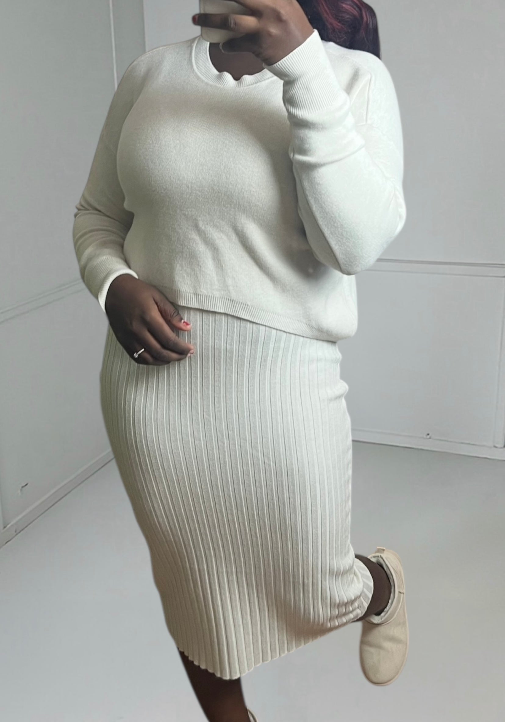 This sweater dress embodies the perfect balance between comfort and sophistication. Its flowing cut and soft fabric make it a versatile piece that will take you from everyday wear to special occasions.