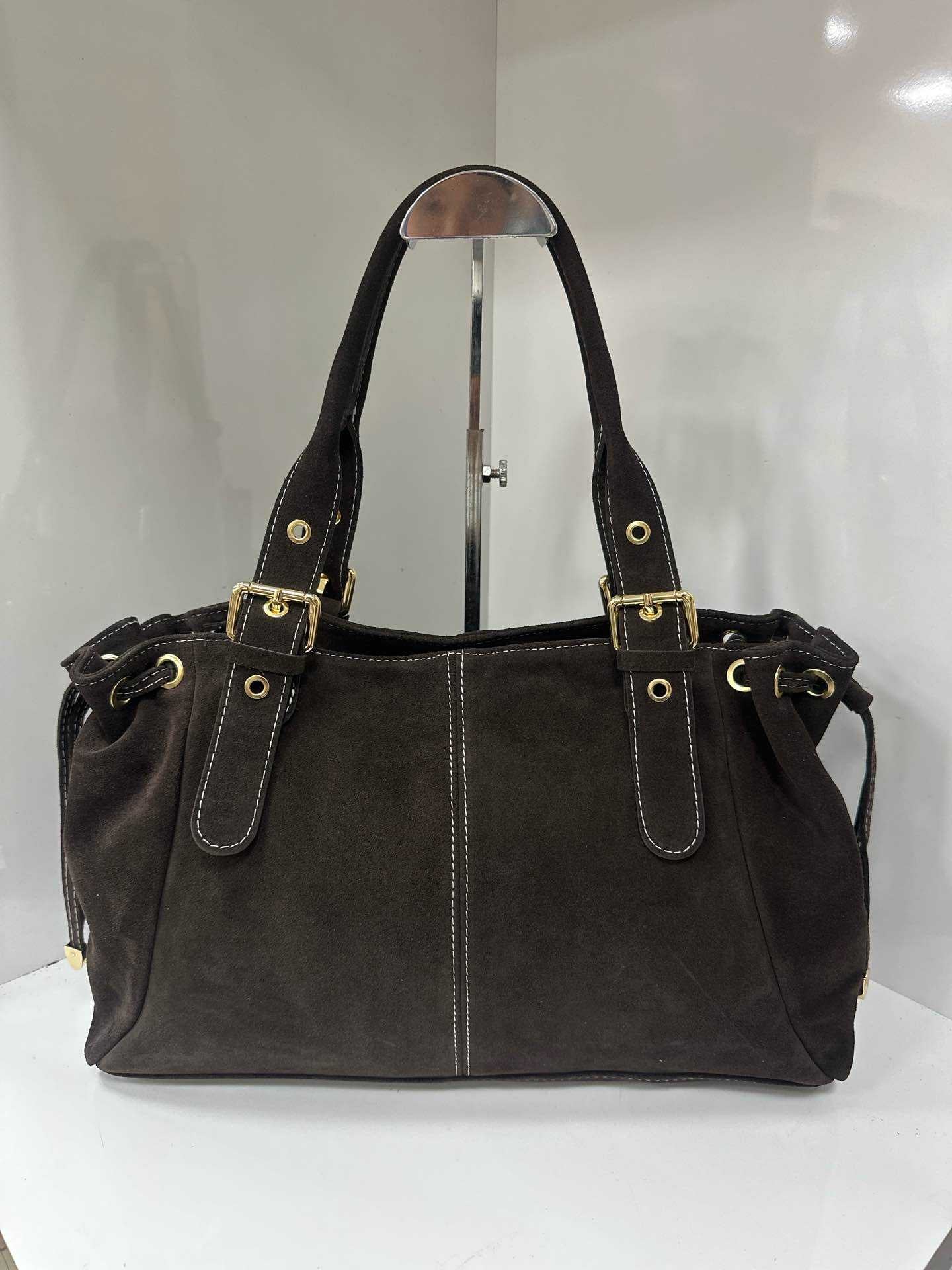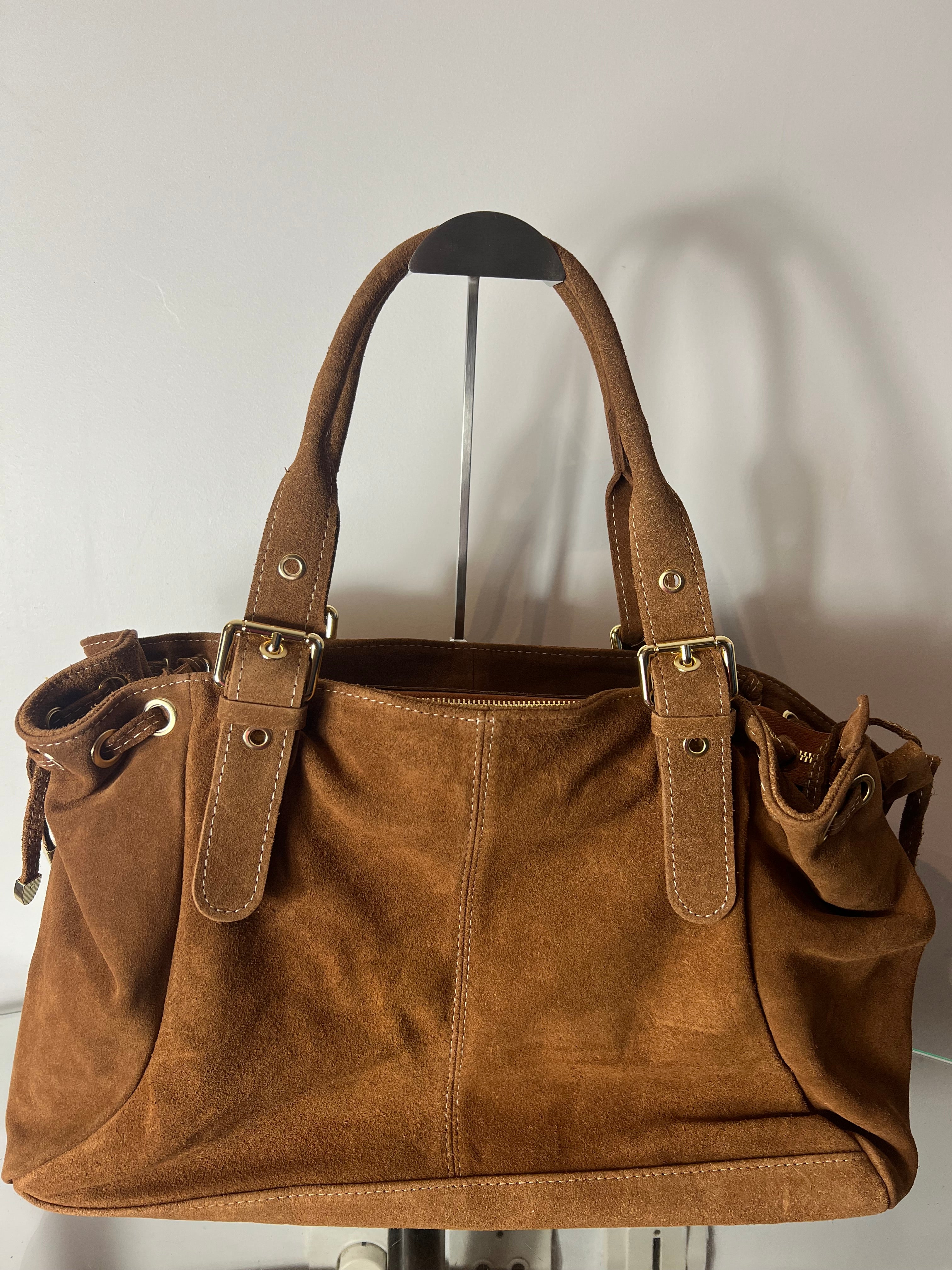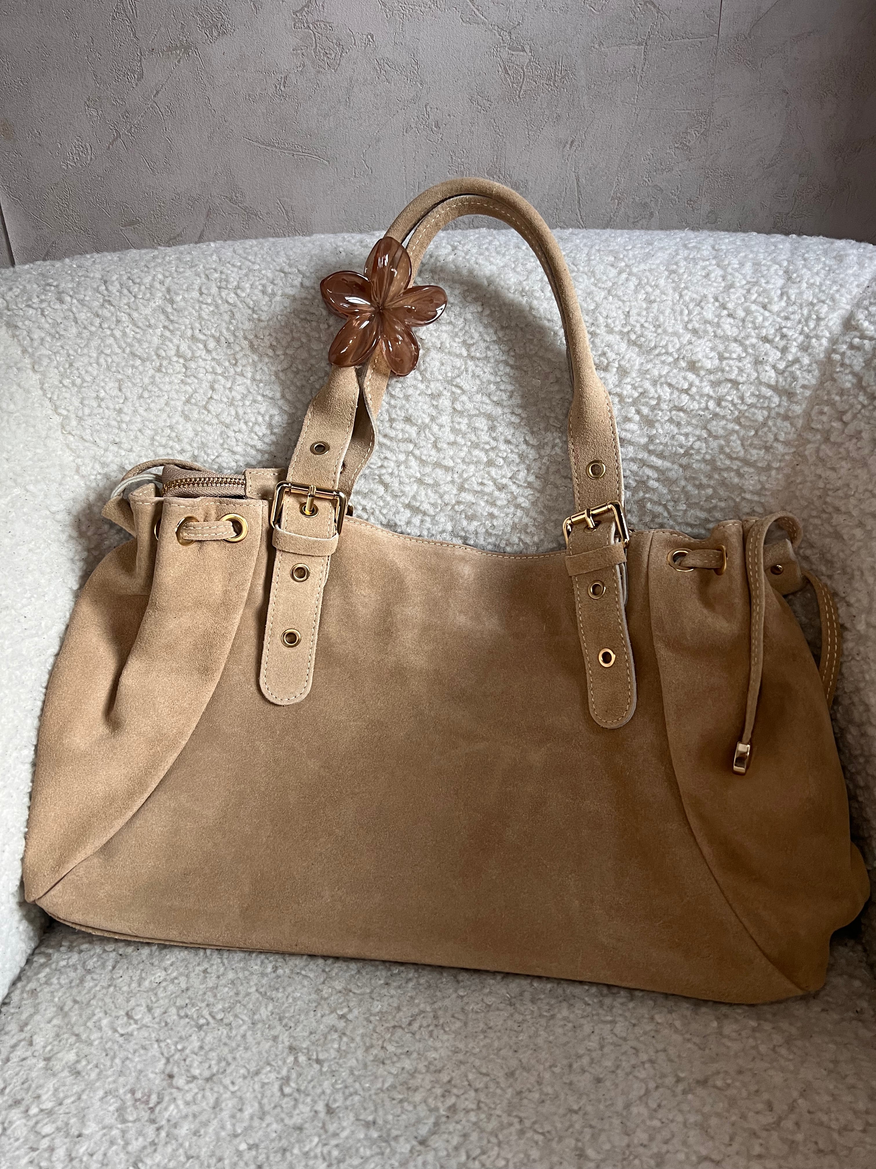 The VALENTINA Grand bag is the perfect spacious accessory for active women who need room without compromising on style. Made from high-quality premium suede leather, it's ideal for classes, work, and all your busy days. With its generous dimensions of 41 x 27 x 15 cm, it accommodates a laptop up to 14 inches, binders, and all your essentials.