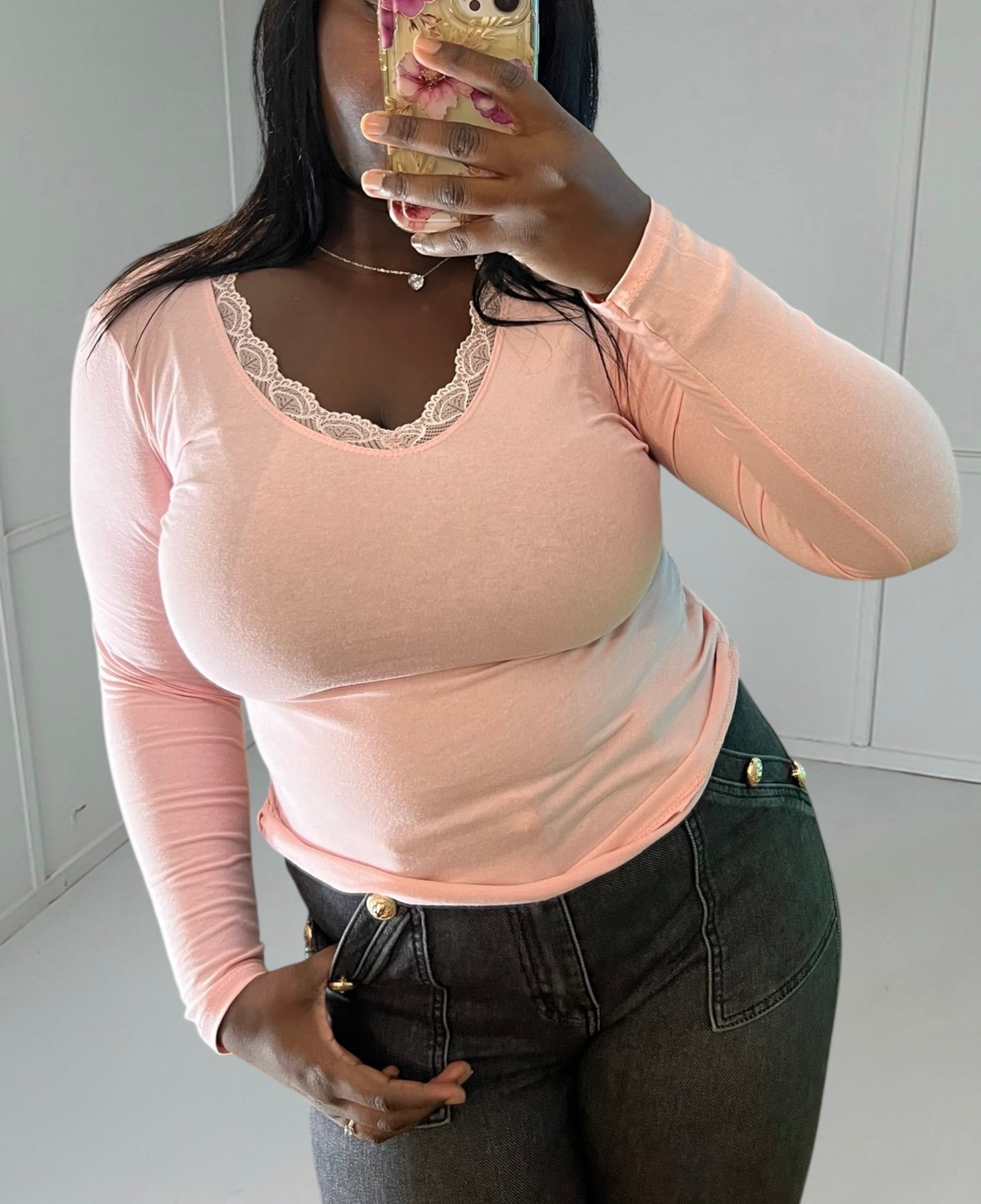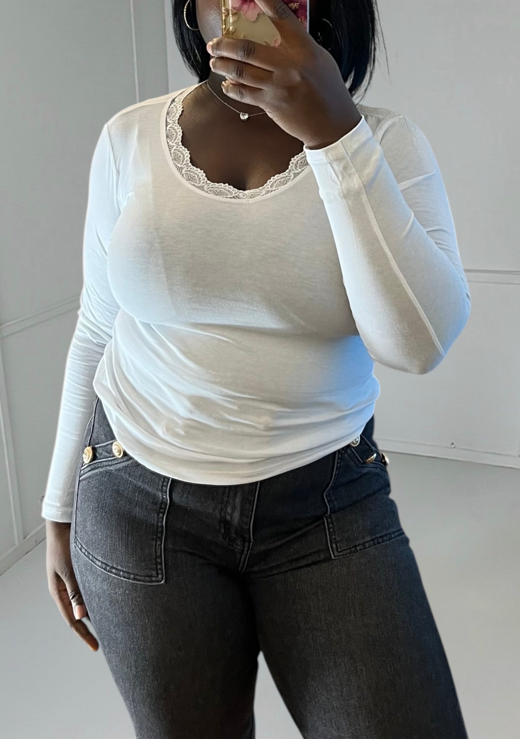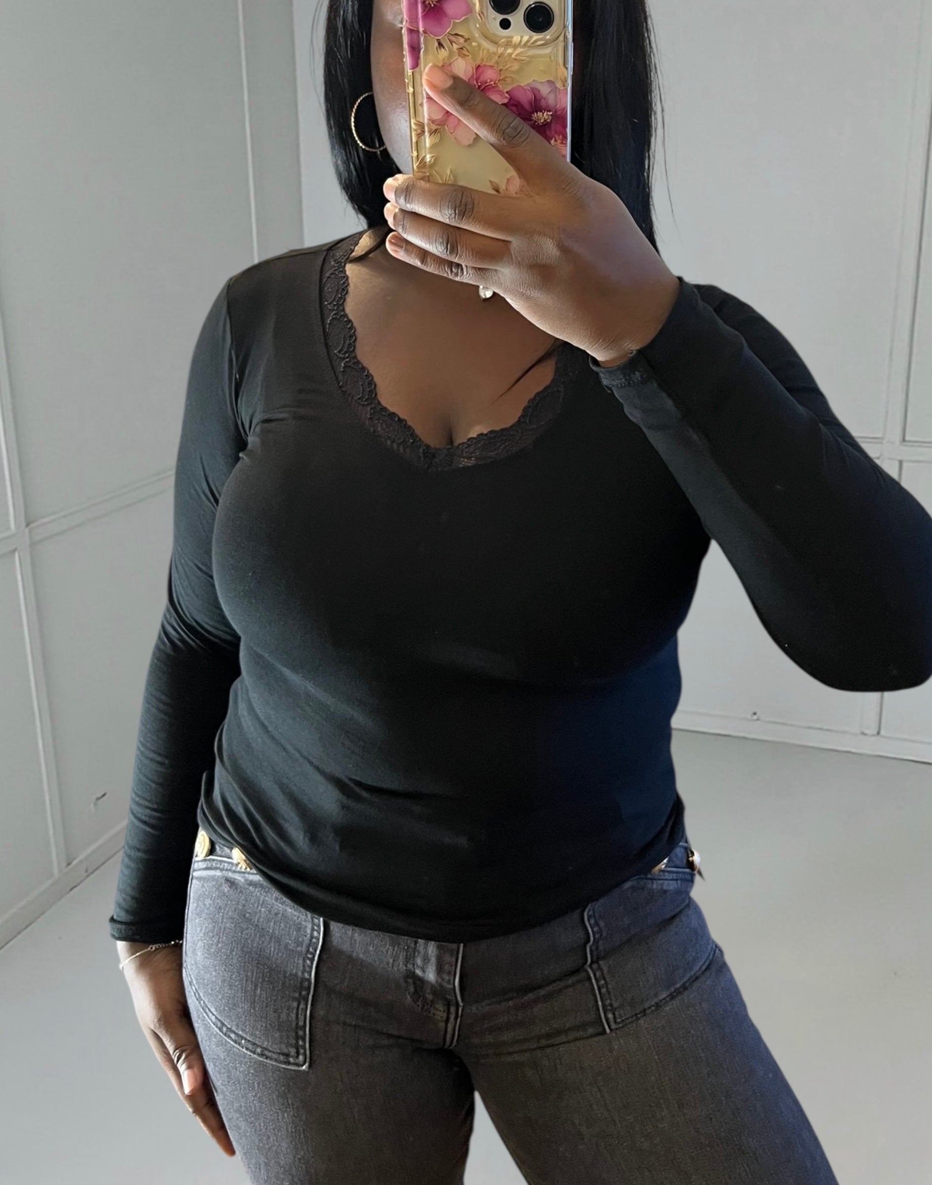 Lace details : Lace adds a touch of femininity and delicacy that makes all the difference. It's the detail that transforms a basic top into a special piece.