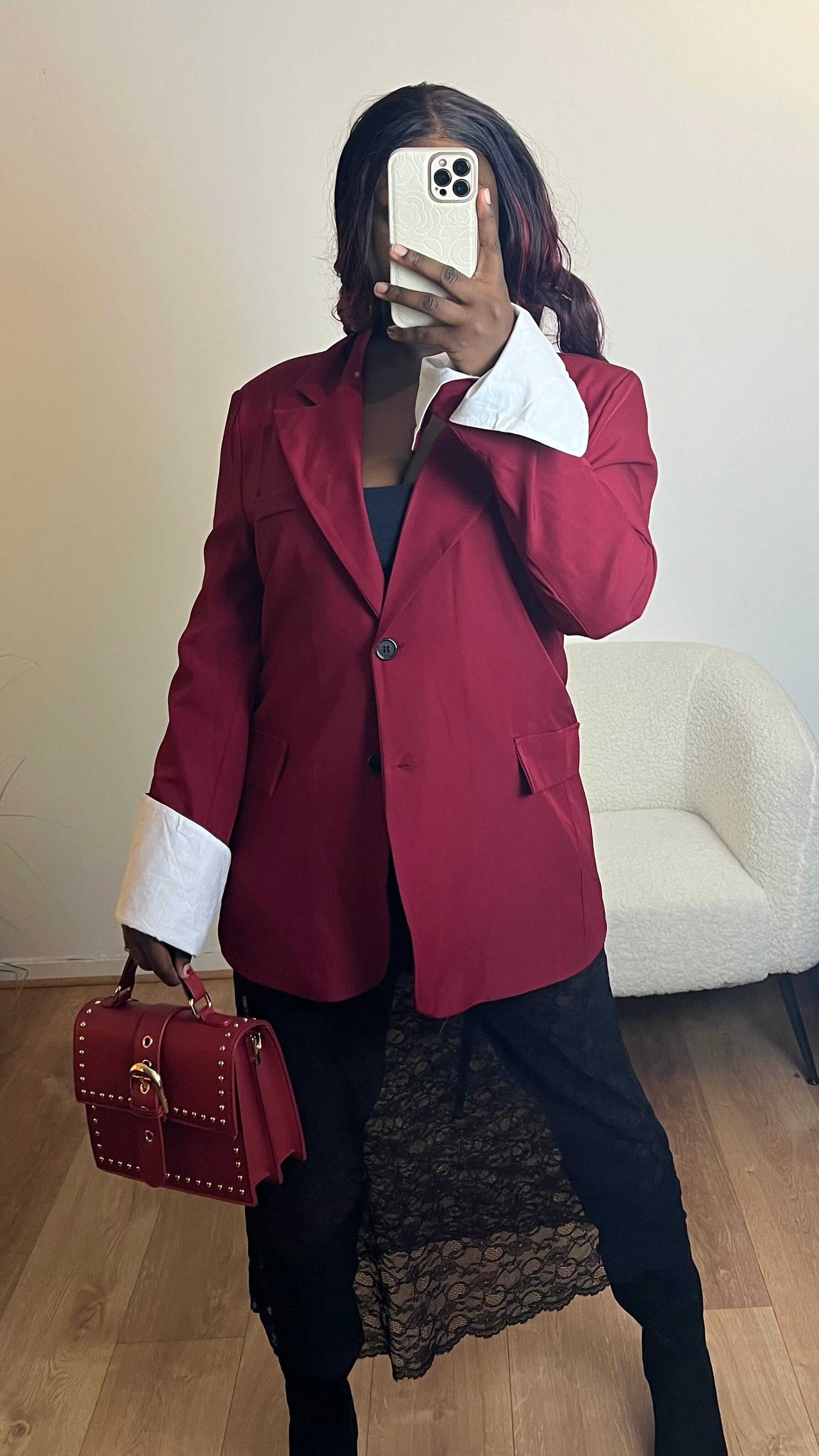 veste Blazer oversize à épaulettes, manches large revers blanc, 2 boutons, fausses poches. Veste avec doublure.
